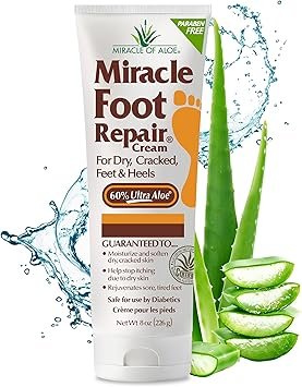 Miracle Foot Repair Cream, 8 oz Repairs Dry Cracked Heels and Feet, Diabetic-Safe, 60% Pure Ultra Aloe Moisturizes, Softens, and Repairs, Relief for Ingrown Toenails
