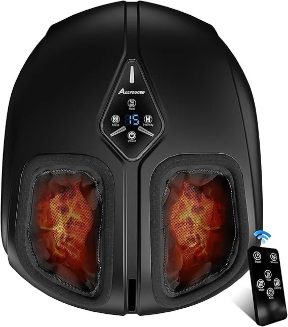 Shiatsu Foot Massager with Heat,Vibration,Air Compression and Deep Kneading for Plantar Fasciitis, Neuropathy,Improve Foot Wellness,Gifts for Women & Men,Black
